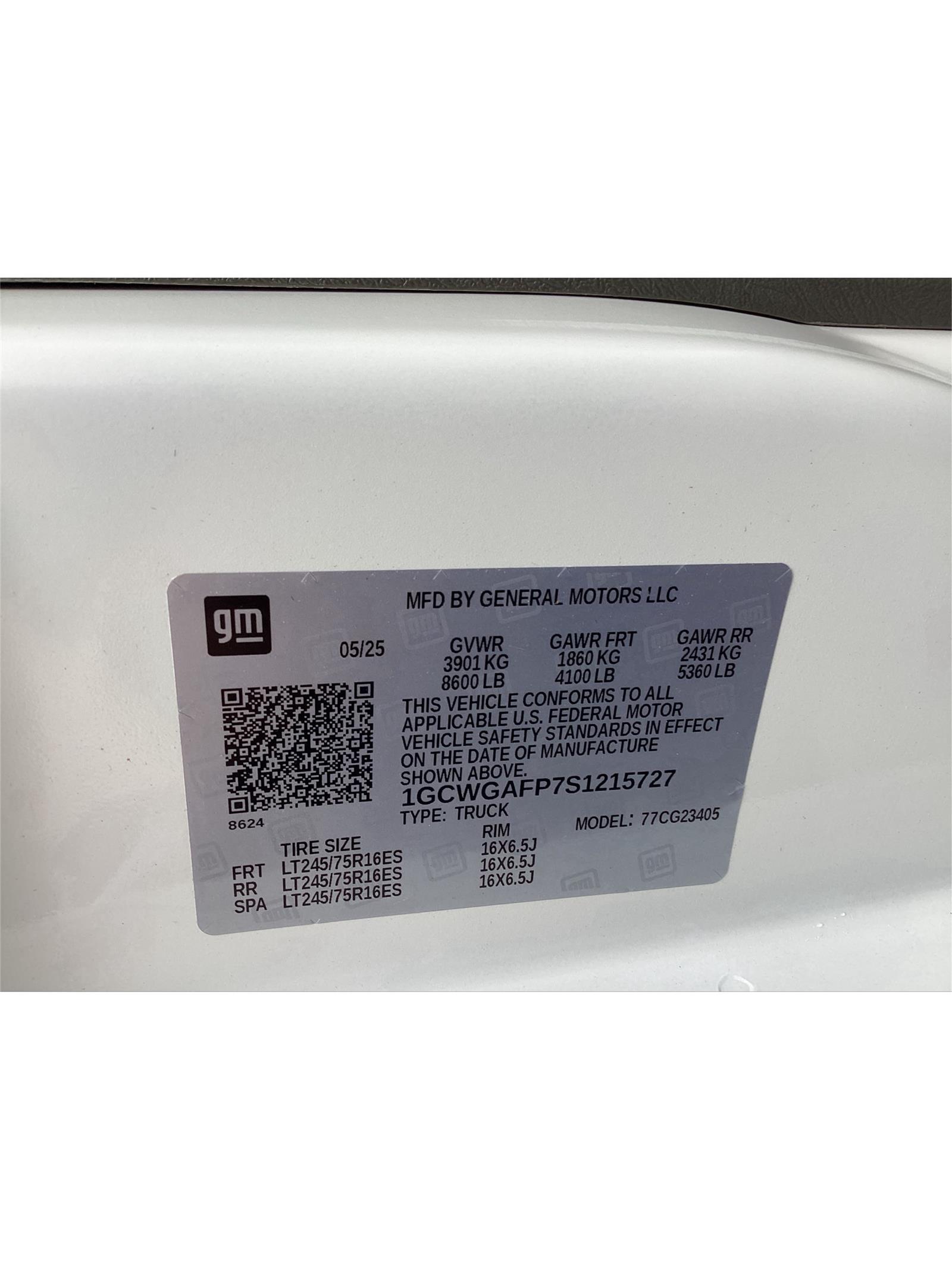 VIN 1GCWGAFP7S1215727