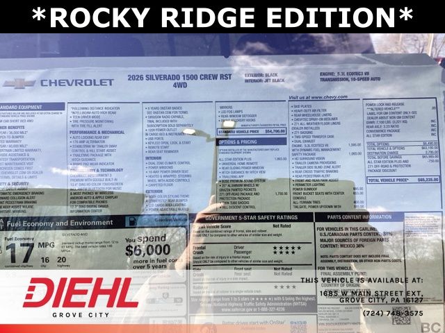 Black 2026 Silverado 1500 Chevrolet RST 4D Crew Cab 4WD 10-Speed Automatic EcoTec3 5.3L V8 Price includes: $4250 - Chevrolet Consumer Cash Program. Exp. 04/30/2026 $500 - Chevrolet Bonus Cash. Exp. 04/30/2026 Price includes dealer added accessories $23,490