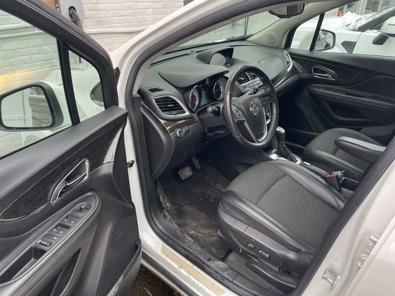 Clean CARFAX. White 2016 Buick Encore FWD 6-Speed Automatic Electronic with Overdrive ECOTEC 1.4L I4 SMPI DOHC Turbocharged VVT 28/34 City/Highway MPG**Power Adjustable Driver's Seat w/Lumbar Support**Back-up Camera**Bluetooth**Remote Start**