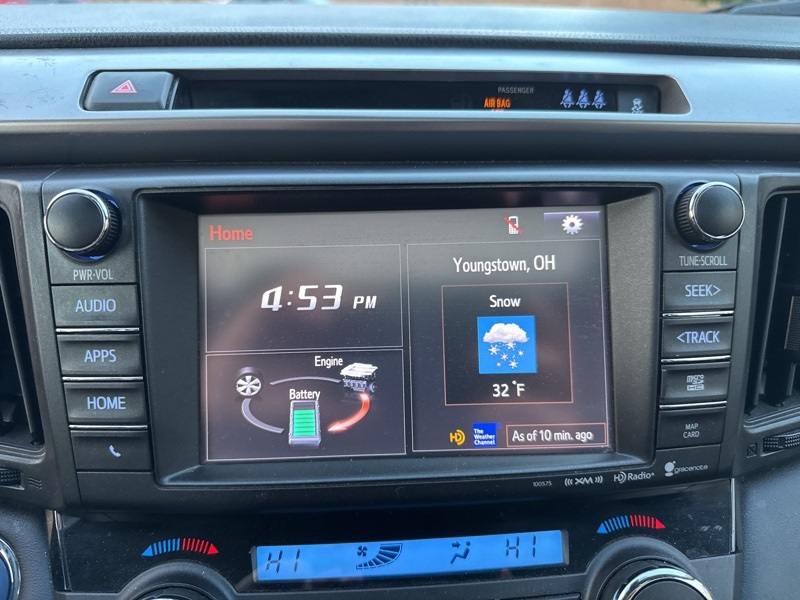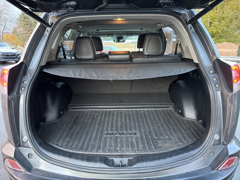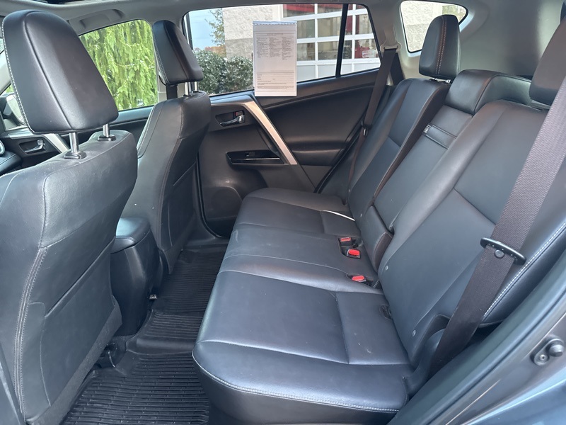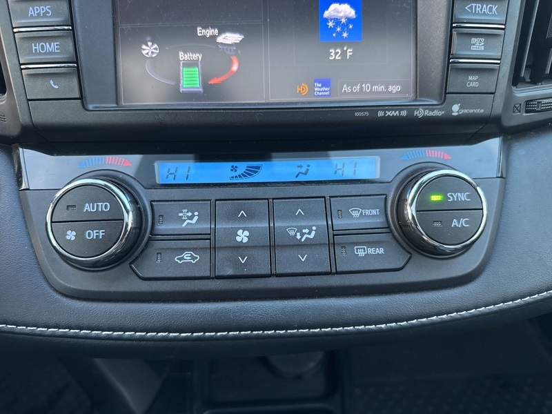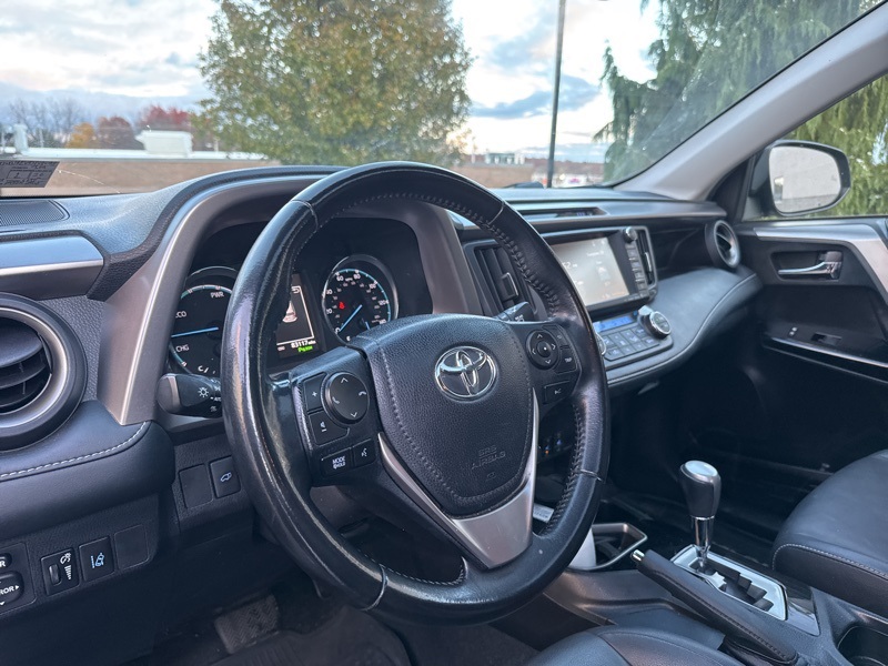 2018 Toyota RAV4 Hybrid Limited 4D Sport Utility AWD 2.5L 4-Cylinder CVT 2.5L 4-Cylinder, 4-Wheel Disc Brakes, 6 Speakers, ABS brakes, Air Conditioning, Alloy wheels, AM/FM radio: SiriusXM, Auto High-beam Headlights, Auto-dimming Rear-View mirror, Automatic temperature control, Axle Ratio: 3.542, Brake assist, Bumpers: body-color, Chrome wheels, Compass, Driver door bin, Driver vanity mirror, Dual front impact airbags, Dual front side impact airbags, Electronic Stability Control, Exterior Parking Camera Rear, Four wheel independent suspension, Front anti-roll bar, Front Bucket Seats, Front Center Armrest, Front dual zone A/C, Front fog lights, Front reading lights, Fully automatic headlights, Garage door transmitter: HomeLink, Heated door mirrors, Heated front seats, Heated Front Sport Seats, Illuminated entry, Knee airbag, Leather Shift Knob, Leather steering wheel, Low tire pressure warning, Memory seat, Navigation System, Occupant sensing airbag, Outside temperature display, Overhead airbag, Overhead console, Panic alarm, Passenger door bin, Passenger vanity mirror, Power door mirrors, Power driver seat, Power Liftgate, Power moonroof, Power steering, Power windows, Radio data system, Radio: Entune Premium Audio with Navigation, Rear anti-roll bar, Rear seat center armrest, Rear window defroster, Rear window wiper, Remote keyless entry, Roof rack, SofTex Seat Trim, Speed control, Speed-sensing steering, Split folding rear seat, Spoiler, Steering wheel mounted audio controls, Telescoping steering wheel, Tilt steering wheel, Traction control, Trip computer, Turn signal indicator mirrors, Variably intermittent wipers, and Wheels: 18" x 7.5J 5-Spoke Superchrome Alloy. 34/30 City/Highway MPG
