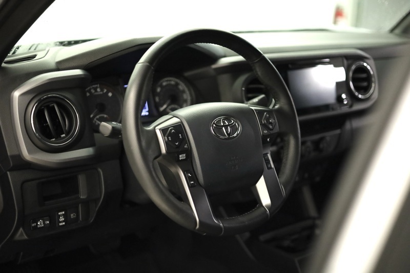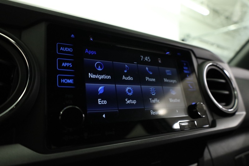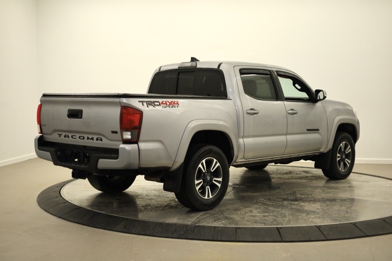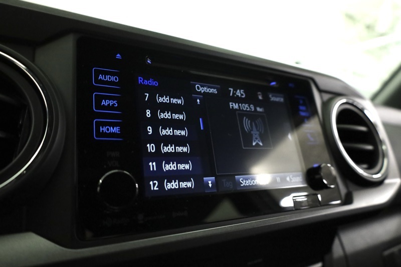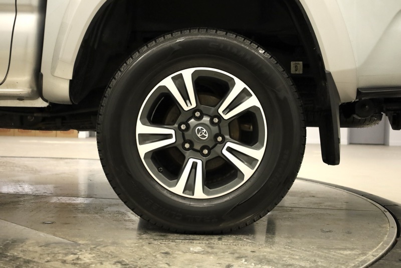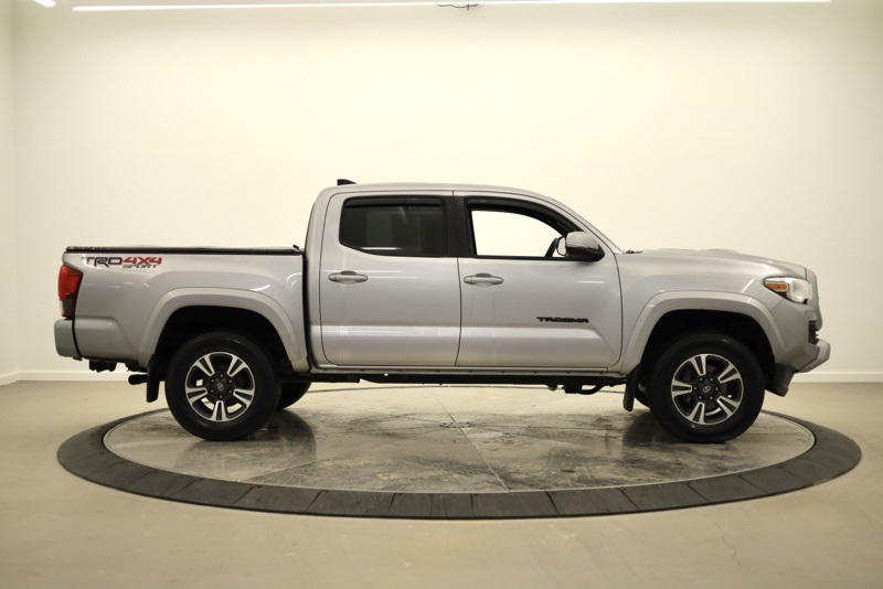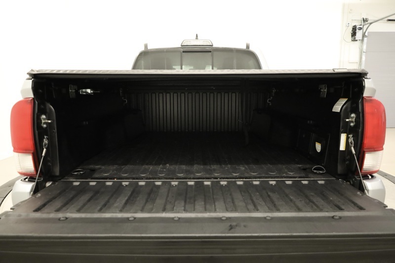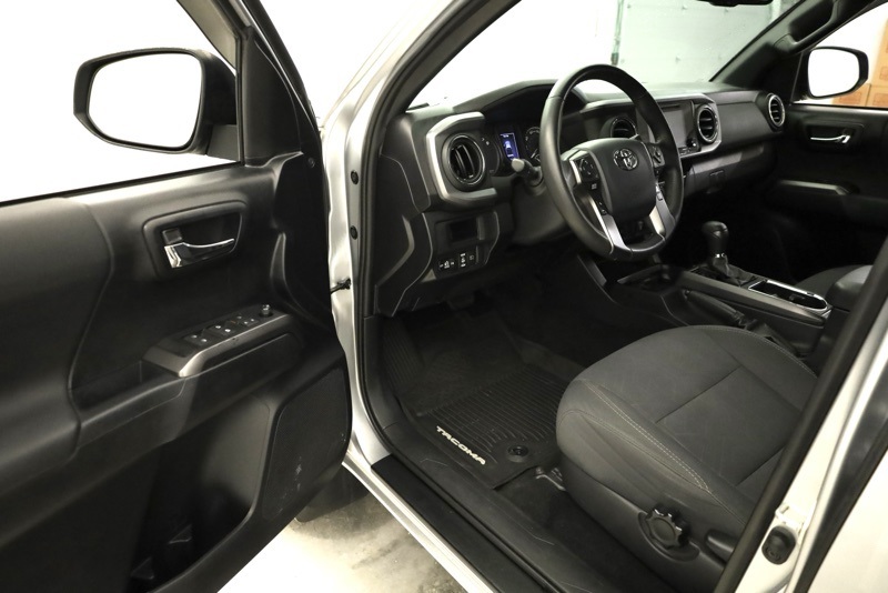 **BLUETOOTH HANDS FREE PHONE**, **BACK-UP CAMERA**, **KEYLESS ENTRY**, **ADAPTIVE CRUISE CONTROL**, **PRE COLLISION SYSTEM**, **LANE KEEP ASSIST**, **POWER SLIDING REAR WINDOW**, **AUTO HIGH BEAMS**, **17" MACHINED ALLOY WHEEL**, **FACTORY NAVIGATION**, **7" TOUCHSCREEN RADIO**, 4WD, 120V/400W Deck Mounted AC Power, 6 Speakers, ABS brakes, Active Cruise Control, Air Conditioning, Alloy wheels, AM/FM radio: SiriusXM, Anti-whiplash front head restraints, Auto High-beam Headlights, Auto-Dimming Inside Rear-View Mirror w/Compass, Auto-dimming Rear-View mirror, Axle Ratio: 3.91, Brake assist, Bumpers: body-color, CD player, Color-Keyed Overfenders, Driver door bin, Dual front impact airbags, Dual front side impact airbags, Electronic Stability Control, Engine Immobilizer, Entune App Suite, Exterior Parking Camera Rear, Fabric Seat Trim (FD), Front anti-roll bar, Front Bucket Seats, Front Center Armrest, Front fog lights, Front reading lights, Front wheel independent suspension, Illuminated entry, Knee airbag, Leather Shift Knob, LED Daytime Running Lamps, Low tire pressure warning, Occupant sensing airbag, Outside temperature display, Overhead airbag, Overhead console, Panic alarm, Passenger door bin, Power door mirrors, Power Sliding Rear Window w/Privacy Glass, Power steering, Power windows, Radio: Entune Premium w/AM/FM/CD/Nav/App Suite, Rear step bumper, Remote keyless entry, Remote Keyless Entry System, Security system, Smart Key w/Push Button Start, Speed control, Speed-sensing steering, Split folding rear seat, Steering wheel mounted audio controls, Tachometer, Telescoping steering wheel, Tilt steering wheel, Traction control, TRD Sport Package (PY), Trip computer, Turn signal indicator mirrors, Variable Intermittent Wipers, Variably intermittent wipers, Wheels: 17" x 7.5" Machined Alloy, Wide Angle Front Fog Lamps. Clean CARFAX. Silver 2019 Toyota Tacoma TRD Sport V6 4WD 6-Speed Automatic 3.5L V6 PDI DOHC 24V LEV3-ULEV70 278hp