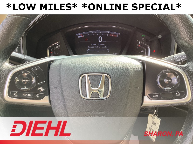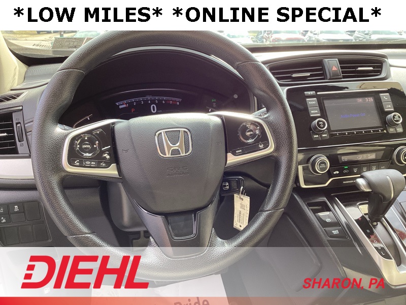 AWD, 17" Alloy Wheels, 4 Speakers, 4-Wheel Disc Brakes, 5.64 Axle Ratio, ABS brakes, Adaptive Cruise Control: Adaptive Cruise Control (ACC) with Low-Speed Follow, Air Conditioning, Alloy wheels, AM/FM radio, Auto High-beam Headlights, Automatic temperature control, Brake assist, Bumpers: body-color, Cloth Seat Trim, Delay-off headlights, Driver door bin, Driver vanity mirror, Dual front impact airbags, Dual front side impact airbags, Electronic Stability Control, Exterior Parking Camera Rear, Forward collision: Collision Mitigation Braking System (CMBS) + FCW mitigation, Four wheel independent suspension, Front anti-roll bar, Front Bucket Seats, Front Center Armrest, Front reading lights, Illuminated entry, Low tire pressure warning, Occupant sensing airbag, Outside temperature display, Overhead airbag, Overhead console, Panic alarm, Passenger door bin, Passenger vanity mirror, Power door mirrors, Power steering, Power windows, Radio data system, Radio: 160-Watt AM/FM Audio System, Rear anti-roll bar, Rear seat center armrest, Rear window defroster, Rear window wiper, Remote keyless entry, Speed control, Speed-sensing steering, Split folding rear seat, Spoiler, Steering wheel mounted audio controls, Tachometer, Telescoping steering wheel, Tilt steering wheel, Traction control, Trip computer. 2020 Honda CR-V LX AWD CVT 1.5L I4 DOHC 16V
