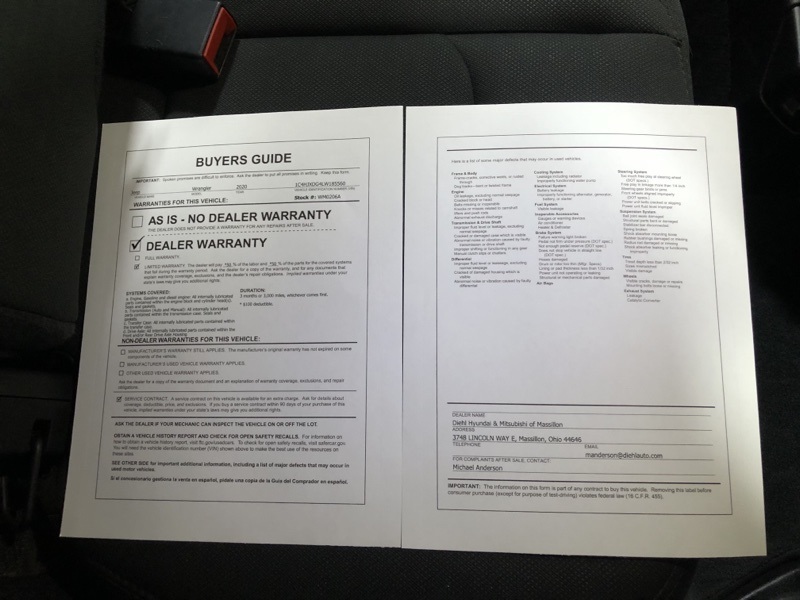 *Confirm any warranty information with dealer before purchase.Roadside warranty