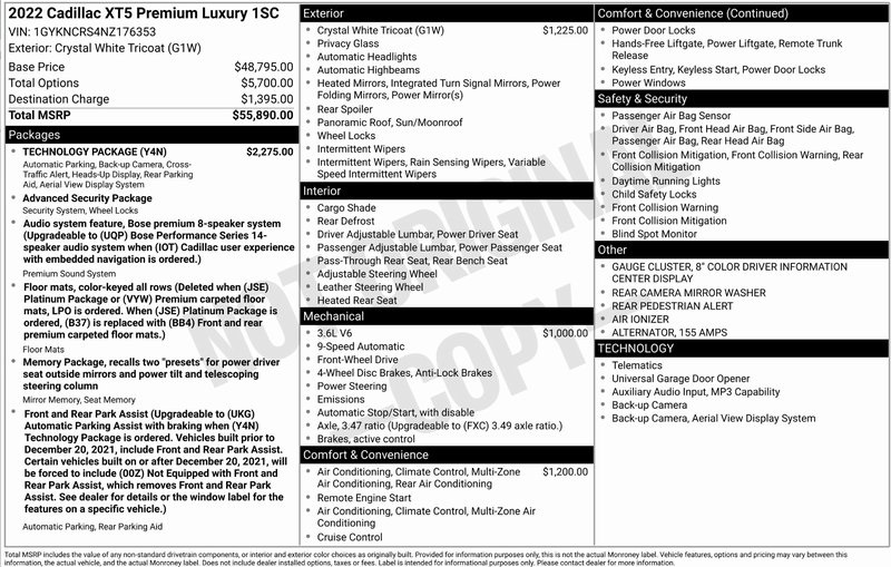 Recent Arrival! **ONE OWNER**, **CLEAN CARFAX**, **NEW TIRES!!**, **HEATED SEATS**, **COOLED SEATS**, **ADAPTIVE CRUISE CONTRL**, **LANE KEEP ASSIST**, **BLIND SPOT DETECTION**, **FRONT CRASH DETECTION**, **BLUETOOTH**, **NAVIGATION**, **BACKUP CAMERA**, **ALLOY WHEELS**, ** REMOTE START**, **PANO SUNROOF**, **POWER LIFTGATE**, **HEADS UP DISPLAY**, **ANDROID AUTO**, **APPLE CARPLAY*, XT5 Premium Luxury, Crystal White Tricoat, Cirrus Leather, 4-Wheel Disc Brakes, 8" Color Driver Information Center Display, ABS brakes, Apple CarPlay/Android Auto, Auto High-beam Headlights, Automatic Dual-Zone Climate Control, Automatic Emergency Braking, Automatic Parking Assist w/Braking, Bose Premium 8-Speaker Audio System Feature, Delay-off headlights, Dual Driver Info Center Display Gauge Cluster, Front & Rear Park Assist, Fully automatic headlights, HD Rear Vision Camera, HD Surround Vision, Head-Up Display, Heated front seats, Inside Rear-View Auto-Dimming Mirror, Low tire pressure warning, Memory seat, Power driver seat, Power Liftgate, Power moonroof: UltraView, Premium Luxury Package 1SC, Rain sensing wipers, Rear Camera Mirror, Rear Camera Mirror Washer, Rear Pedestrian Alert, Steering wheel memory, Steering wheel mounted audio controls, Technology Package, Teen Driver, Telescoping steering wheel, Tilt steering wheel, Ventilated Driver & Front Passenger Seats, Wheels: 18" 6-Split Spoke Alloy.