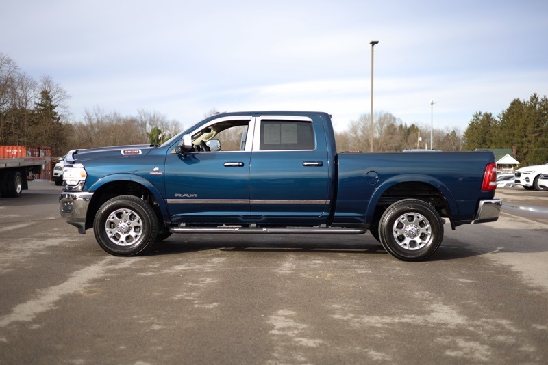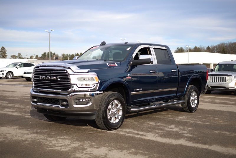 **BLUETOOTH HANDS FREE PHONE**, **LEATHER**, **MOONROOF**, **BACK-UP CAMERA**, **HEATED AND COOLED FRONT SEATS**, **FACTORY SPRAY IN LINER**, **6.7L I6 CUMMINGS**, **HARMON KARDON PREMIUM SOUND**, **FACTORY NAVIGATION**, **LANE KEEP ASSIST**, **BIRDSEYE VIEW**, **POWER ADJUSTABLE PEDALS**, **LARAMIE LEVEL B**, **ADAPTIVE CRUISE CONTROL**, **FULL SPEED COLLISION WARNING**, 115V Auxiliary Rear Power Outlet, 17 Speaker harman kardon Premium Sound, 2 Way Rear Headrest Seat, 220 Amp Alternator, 2nd Row In Floor Storage Bins, 3.73 Axle Ratio, 4 Way Front Headrests, 4-Wheel Disc Brakes, ABS brakes, Active Noise Control System, Adaptive Cruise Control w/Stop, Adaptive Steering System, Adjustable pedals, Air Conditioning, Air Suspension Decal, Alexa Built-In, All R1 High Radios, All Radio Equipped Vehicles, Alloy wheels, AM/FM radio: SiriusXM, Apple CarPlay/Android Auto, Auto High Beam Headlamp Control, Auto Level Rear Air Suspension, Auto-dimming Rear-View mirror, Automatic temperature control, Brake assist, Bumpers: chrome, Chrome Appearance Group, Chrome Belt Moldings, Chrome Exterior Mirrors, Chrome Flat Wheel-to-Wheel Side Steps, Chrome Tow Hooks, Cold Weather Group, Compass, Connected Travel & Traffic Services, CTR Stop Lamp w/Cargo View Camera, Delay-off headlights, Digital Rearview Mirror, Disassociated Touchscreen Display, Driver door bin, Driver vanity mirror, Dual front impact airbags, Dual front side impact airbags, Electronic Stability Control, Electronically Controlled Throttle, Engine Block Heater, Exterior Mirrors Courtesy Lamps, Exterior Mirrors w/Heating Element, Exterior Mirrors w/Memory, Exterior Mirrors w/Supplemental Signals, Foam Bottle Insert (Door Trim Panel), For Details, Visit DriveUconnect.com, For More Info, Call 800-643-2112, Front anti-roll bar, Front Center Armrest w/Storage, Front dual zone A/C, Front fog lights, Front reading lights, Front Seat Back Map Pockets, Full Speed Forward Collision Warning Plus, Fully automatic headlights, Garage door transmitter, GPS Navigation, HD Radio, Heated door mirrors, Heated Front Seats, Heated front seats, Heated Second Row Seats, Heated Steering Wheel, Heated steering wheel, Illuminated entry, Lane Keep Assist, Laramie Level B Equipment Group (DISC), Leather steering wheel, Leather Trim 40/20/40 Bench Seat, Low tire pressure warning, Manufacturer's Statement of Origin, Mirror Running Lights, Mirror-Mounted Aux Reverse Lamps, MOPAR Spray In Bedliner, MOPAR Winter Front Grille Cover, Occupant sensing airbag, Off-Road Information Pages, Outside temperature display, Overhead airbag, Overhead console, Panic alarm, ParkView Rear Back-Up Camera, Passenger door bin, Passenger vanity mirror, Power 2-Way Driver Lumbar Adjust, Power 2-Way Passenger Lumbar Adjust, Power Adjust 8-Way Driver Seat, Power Adjust 8-Way Front Passenger Seat, Power Adjustable Convex Aux Mirrors, Power Adjustable Pedals w/Memory, Power Chrome Tow Mirrors w/Convex Spotter & Memory, Power door mirrors, Power driver seat, Power Folding Mirrors, Power passenger seat, Power steering, Power windows, Protection Group, Quick Order Package 2HH Laramie, Radio data system, Radio: Uconnect 5 Nav w/8.4" Display, Radio/Driver Seat/Mirrors/Pedals Memory, Rain Sensitive Windshield Wipers, Rear 60/40 Folding Seat, Rear anti-roll bar, Rear reading lights, Rear seat center armrest, Rear step bumper, Rear window defroster, Remote keyless entry, Remote Tailgate Release, Safety Group B (DISC), Security system, SiriusXM Radio Service, SiriusXM w/360L, Speed control, Split folding rear seat, Steering wheel mounted audio controls, Surround View Camera System, Tachometer, Tilt steering wheel, Tip Start, Towing Technology Group B, Traction control, Trailer Reverse Guidance, Trailer Tow Mirrors, Trip computer, Turn signal indicator mirrors, Variably intermittent wipers, Vendor Painted Cargo Box, Vendor Painted Cargo Box Tracking, Voltmeter, Wheels: 18" x 8.0" Polished Aluminum. CARFAX One-Owner. Patriot Blue Pearlcoat 2022 Ram 25