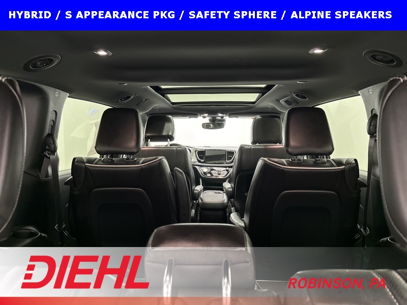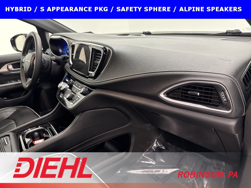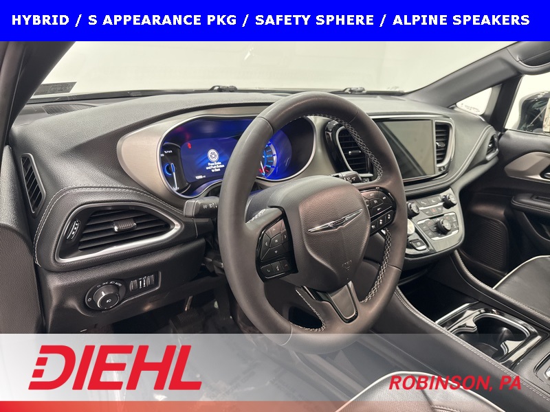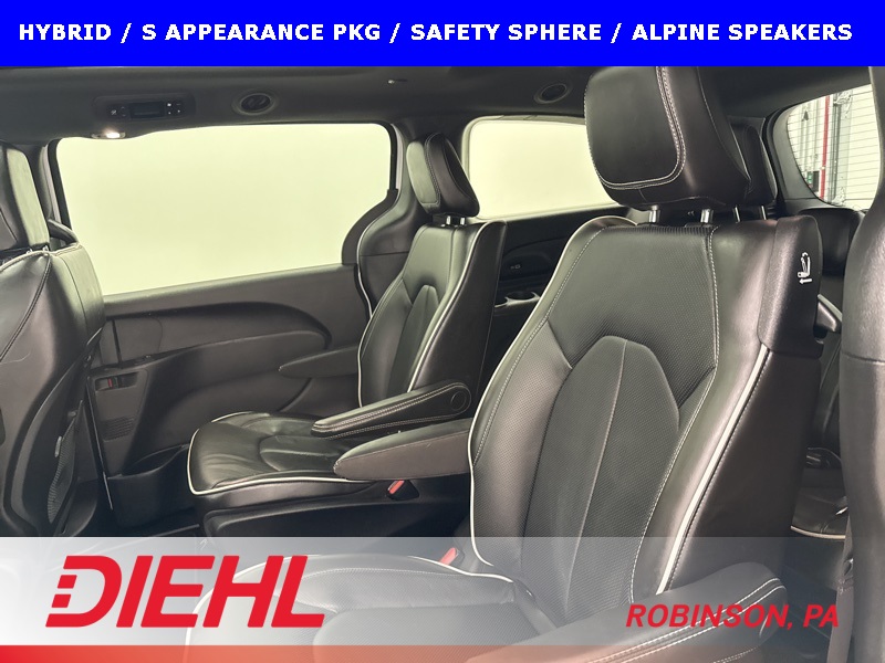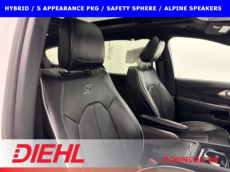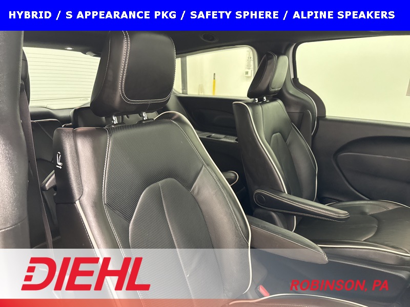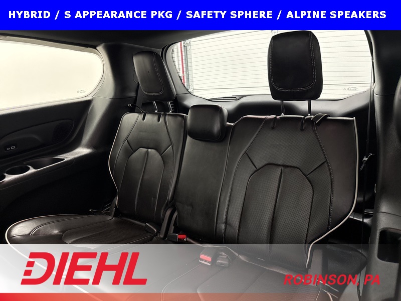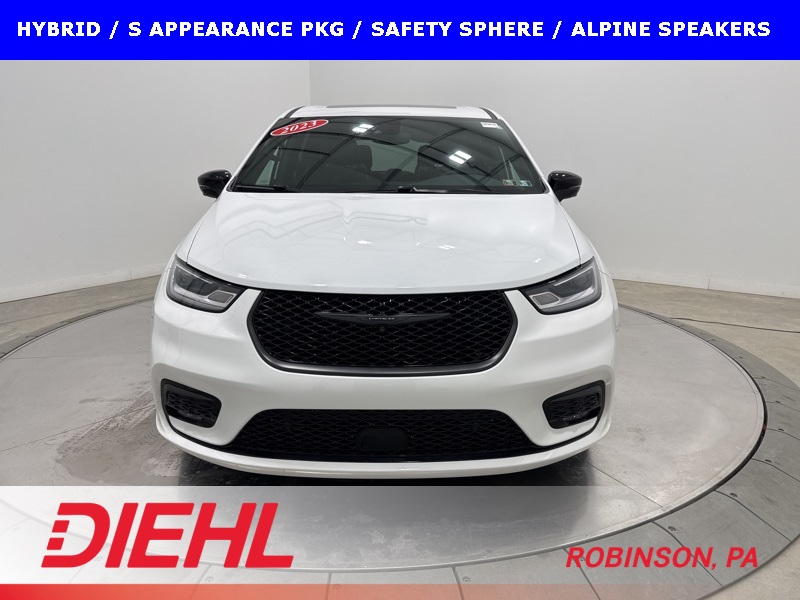 This 2023 Chrysler Pacifica Plug-In Hybrid Limited with the S Appearance Package is the rare minivan that manages to be genuinely luxurious, impressively efficient, and quietly powerful all at the same time. Finished in Bright White Clear-Coat with a Black Nappa leather interior featuring the S logo, this Pacifica blends upscale design with everyday family usability in a way very few vehicles can pull off. The blacked-out S Appearance details give it a sharp, modern presence that stands apart from the typical minivan look.