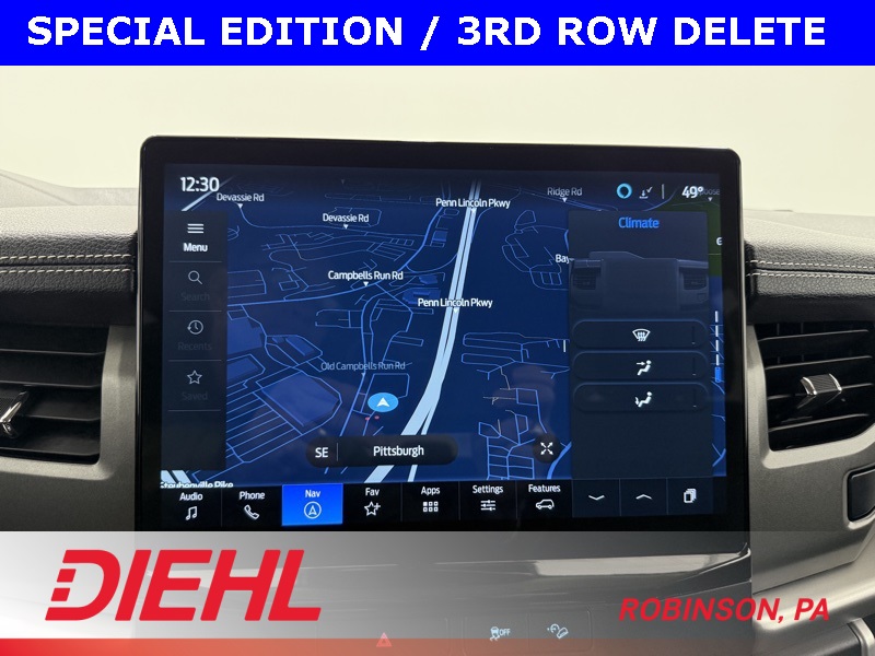 Inside, it’s designed to be practical, comfortable, and easy to live with. Cloth seating, smart interior storage throughout the cabin, and a clean, functional layout make this Expedition feel purpose-built rather than overcomplicated. The infotainment system supports Bluetooth, voice activation, streaming audio, and smartphone connectivity, keeping navigation, music, and calls simple and intuitive. Rear climate controls, multiple power outlets, and a spacious third row ensure passengers stay comfortable no matter where they’re seated.