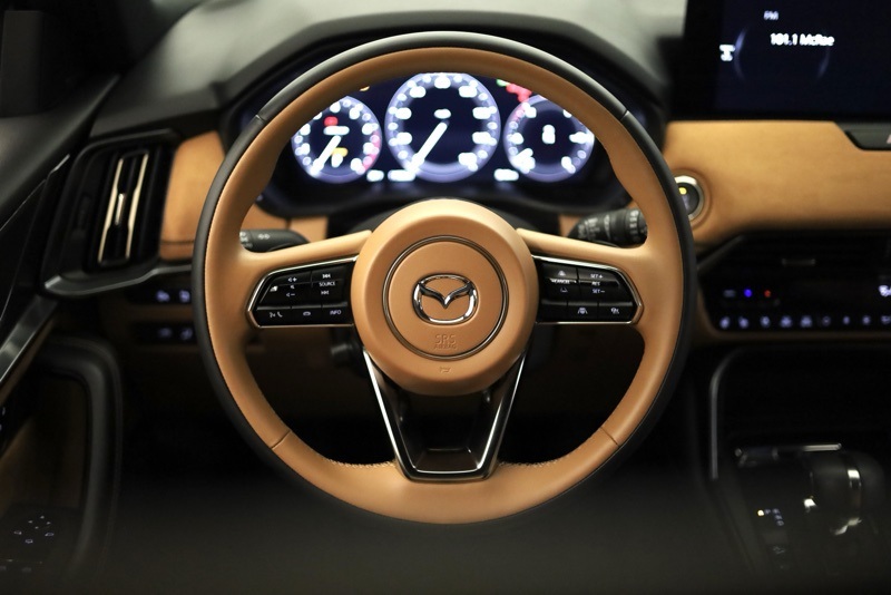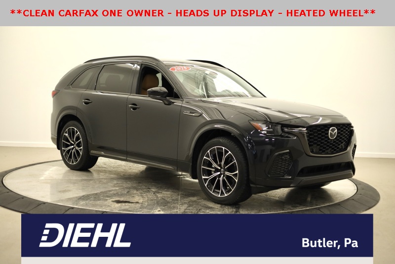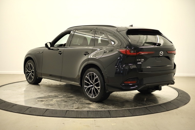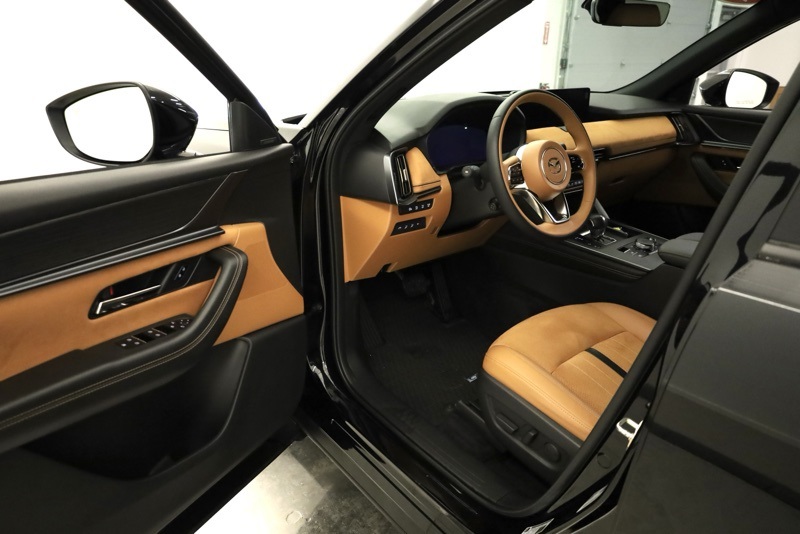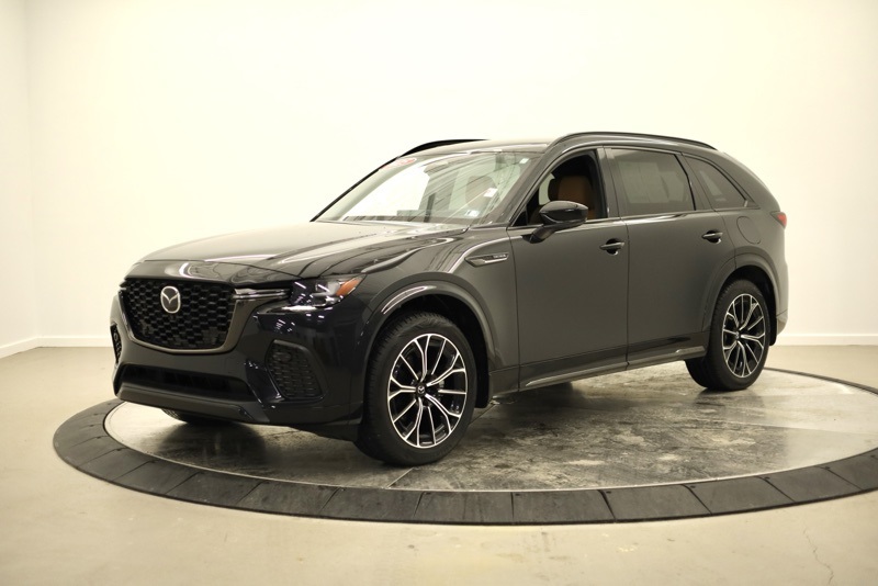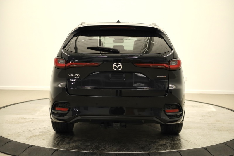 **ALL WHEEL DRIVE**, **BLUETOOTH HANDS FREE PHONE**, **LEATHER**, **BACK-UP CAMERA**, **CLEAN CARFAX ONE OWNER**, **APPLE CARPLAY / ANDROID AUTO**, **BIRDSEYE VIEW**, **POWER LIFTGATE**, **REAR HEATED SEATS**, **FRONT COLLISION MITIGATION**, **BLINDSPOT DETECTION**, **HEADS UP DISPLAY**, **HEATED STEERING WHEEL**, 12 Speakers, 4-Wheel Disc Brakes, ABS brakes, Air Conditioning, Alloy wheels, AM/FM radio: SiriusXM, Auto High-beam Headlights, Auto-dimming door mirrors, Auto-dimming Rear-View mirror, Automatic temperature control, Brake assist, Bumpers: body-color, Cargo Net, Compass, Crossbars in Black, Delay-off headlights, Driver door bin, Driver vanity mirror, Dual front impact airbags, Dual front side impact airbags, E911 Automatic Emergency Notification, Electronic Stability Control, Emergency communication system: MAZDA CONNECT, Four wheel independent suspension, Front anti-roll bar, Front Bucket Seats, Front Center Armrest w/Storage, Front dual zone A/C, Front reading lights, Fully automatic headlights, Garage door transmitter: HomeLink, Heads-Up Display, Heated door mirrors, Heated front seats, Heated rear seats, Heated steering wheel, Heated/Ventilated Front Bucket Seats, Illuminated entry, Infotainment System Voice Command, Knee airbag, Leather Shift Knob, Leather steering wheel, Low tire pressure warning, Mazda Connected Services, Mazda Online Navigation, Memory seat, Nappa Leather Seat Trim w/Quilting, Navigation system: MAZDA CONNECT, Occupant sensing airbag, Outside temperature display, Overhead airbag, Overhead console, Pandora Internet Radio Integration, Panic alarm, Passenger door bin, Passenger vanity mirror, Power door mirrors, Power driver seat, Power Liftgate, Power moonroof, Power passenger seat, Power steering, Power windows, Radio Broadcast Data System Program Information, Radio data system, Radio: AM/FM w/Bose Premium Audio Sound System, Rain sensing wipers, Rear air conditioning, Rear anti-roll bar, Rear reading lights, Rear seat center armrest, Rear window defroster, Rear window wiper, Remote keyless entry, Roadside Assistance Kit, Security system, SMS Text Msg Audio Delivery & Reply, Speed control, Speed-sensing steering, Split folding rear seat, Spoiler, Steering wheel memory, Steering wheel mounted audio controls, Tachometer, Telescoping steering wheel, Tilt steering wheel, Traction control, Trip computer, Turn signal indicator mirrors, Variably intermittent wipers, Ventilated front seats, Wheels: 21" x 9.5J Aluminum Alloy. CARFAX One-Owner. Clean CARFAX. Jet Black Mica 2025 Mazda CX-70 3.3 Turbo S Premium Plus AWD 8-Speed Automatic I6 Turbo