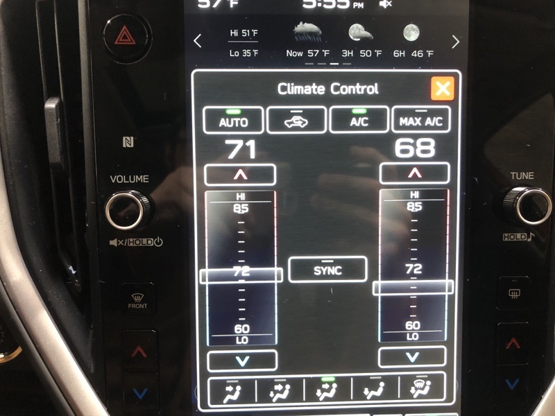 - EyeSight Pre-Collision Throttle Management predictive brake assist system