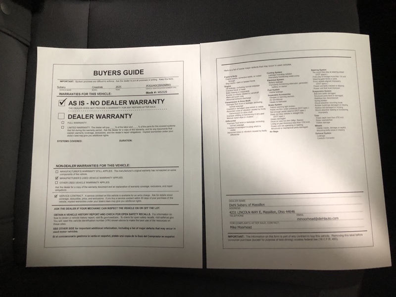 *Confirm any warranty information with dealer before purchase.Roadside warranty